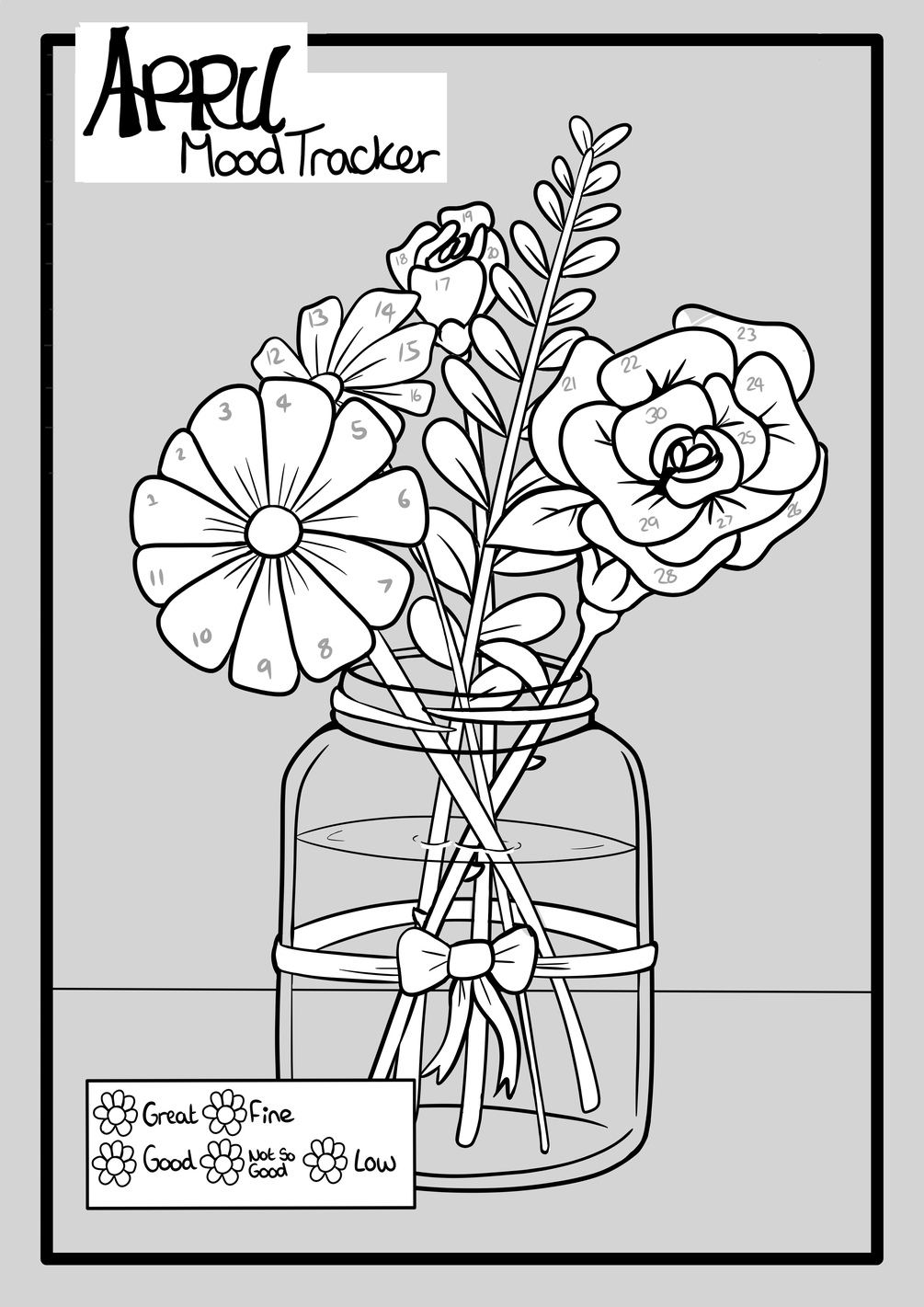 A print and colour mood tracker for the month of April to keep track of your daily mood. Comes with the text below or the option to add your own as well as a PSD to colour digitally if you prefer!
