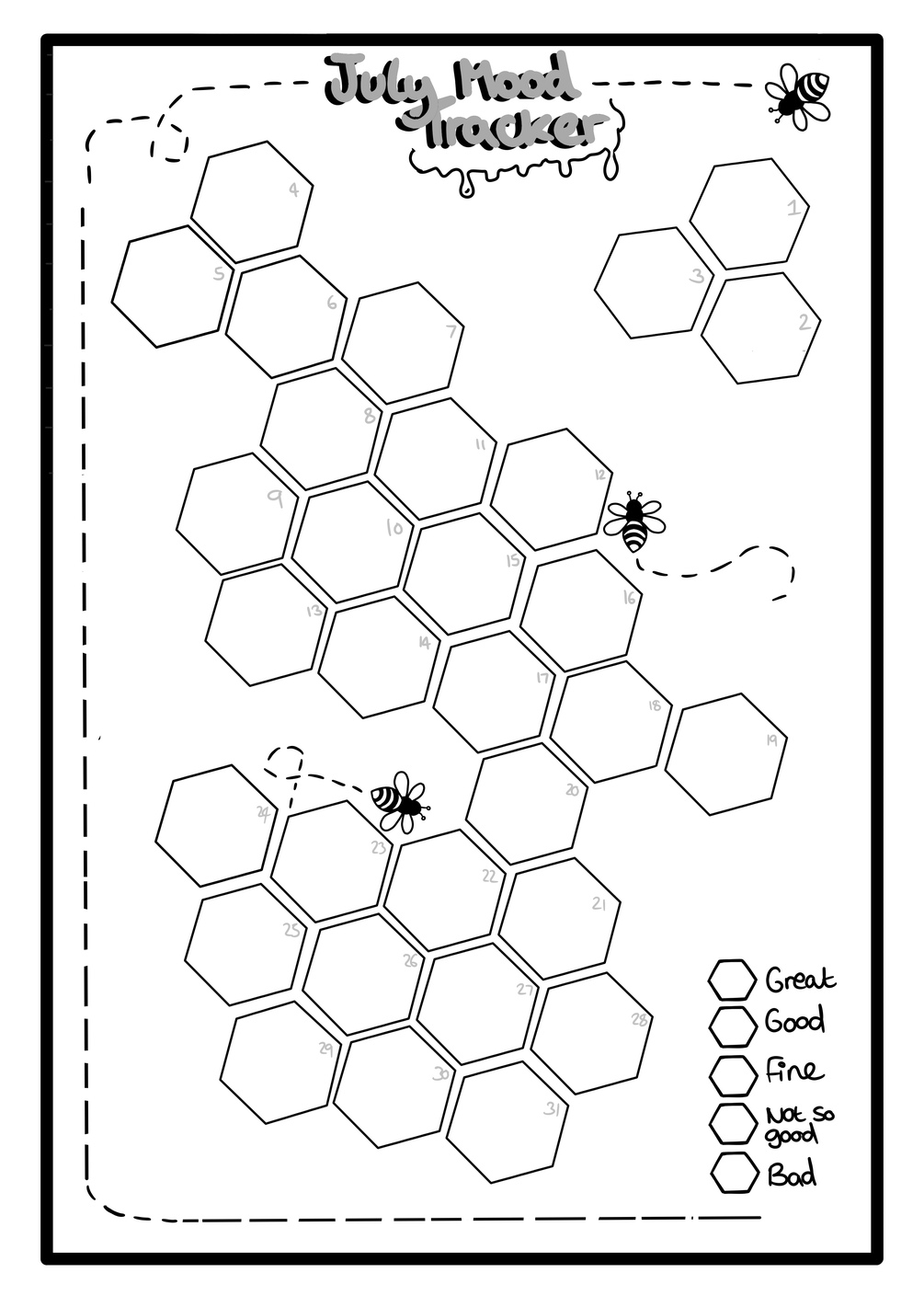 A print and colour mood tracker for the month of July to keep track of your daily mood. Comes with the text below or the option to add your own as well as a PSD to colour digitally if you prefer!